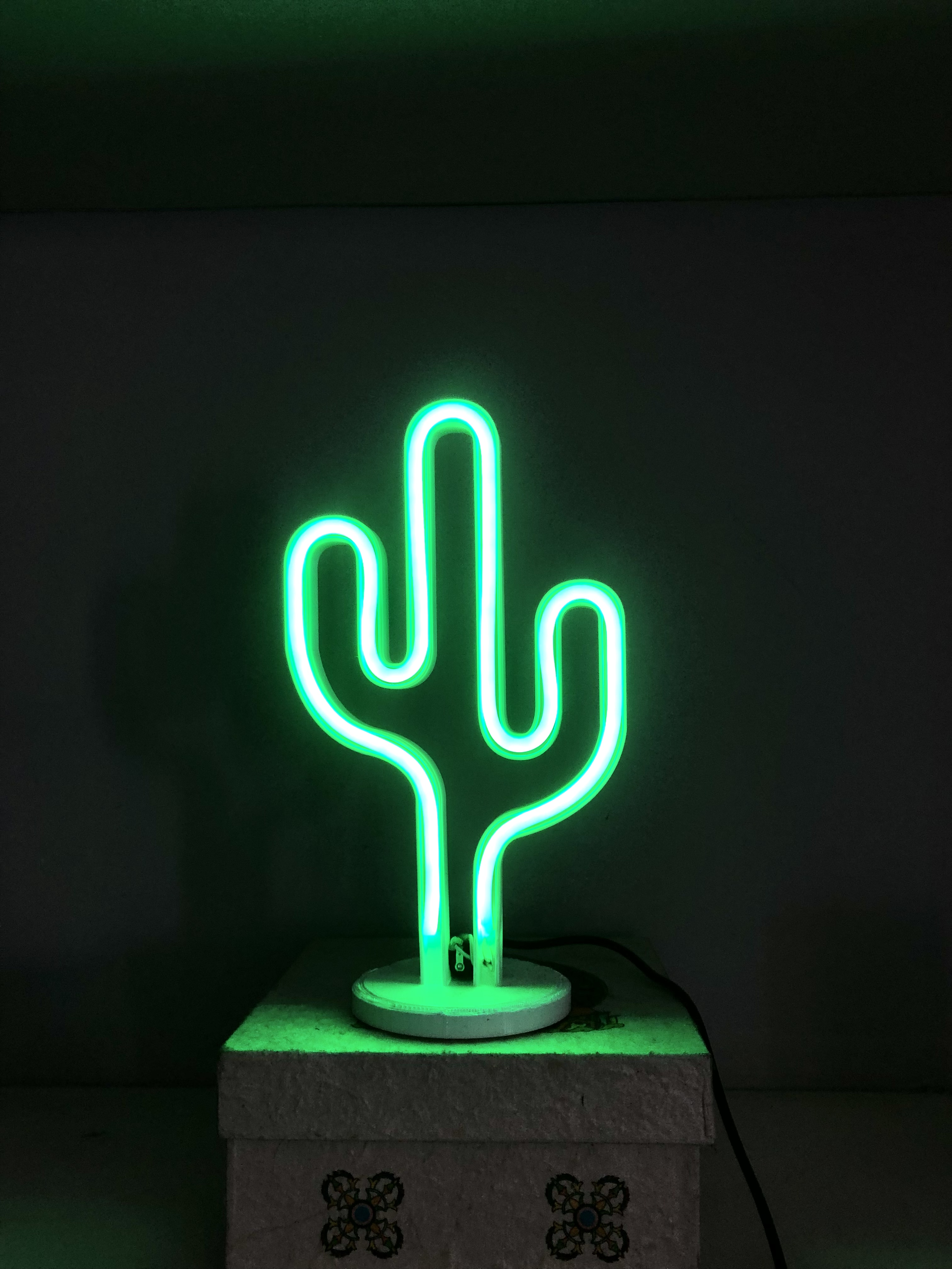 Light Source: Features a central neon strip LED light emitting a neon green glow.